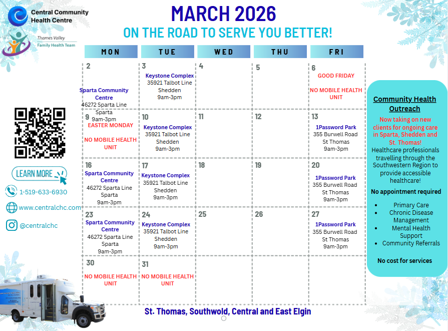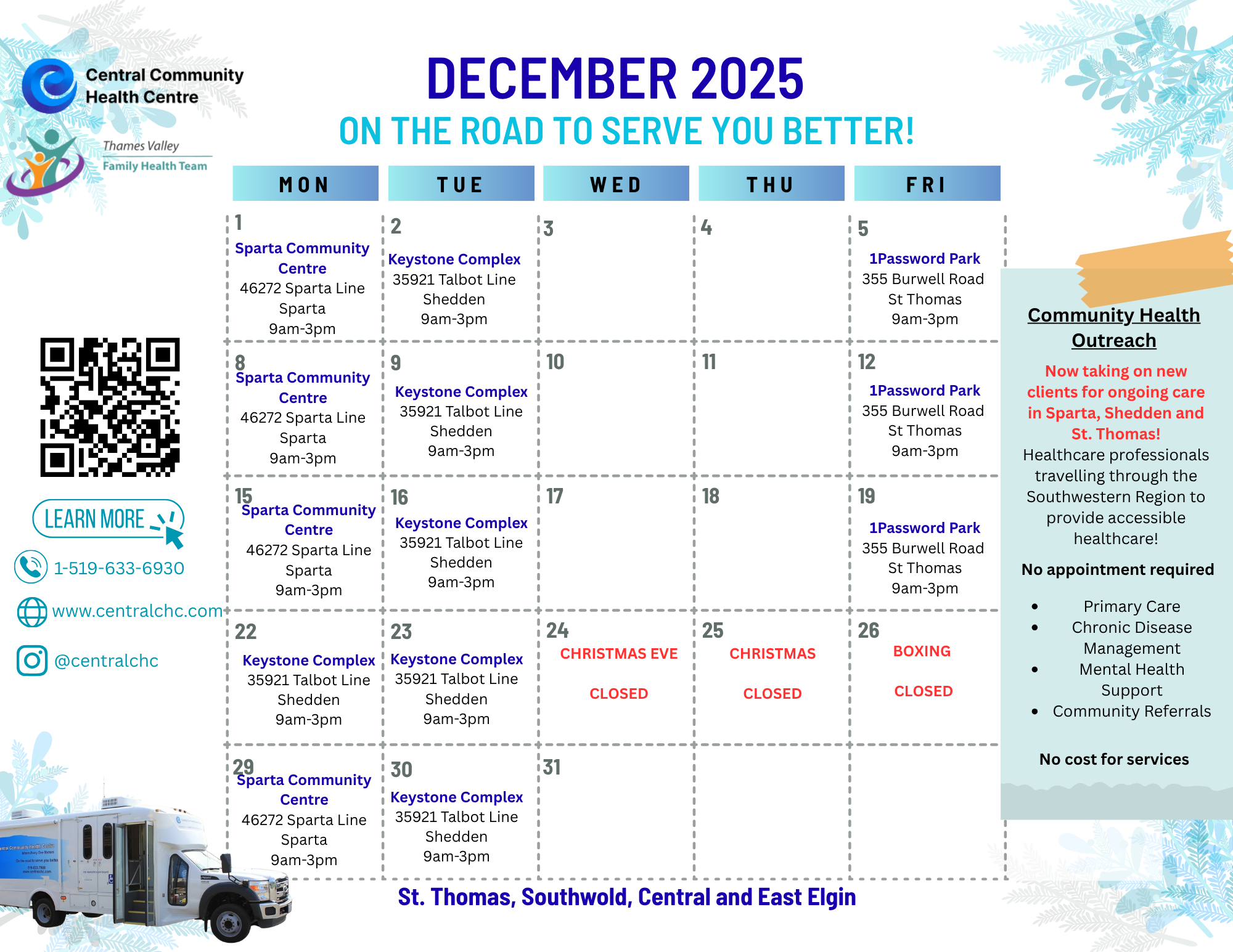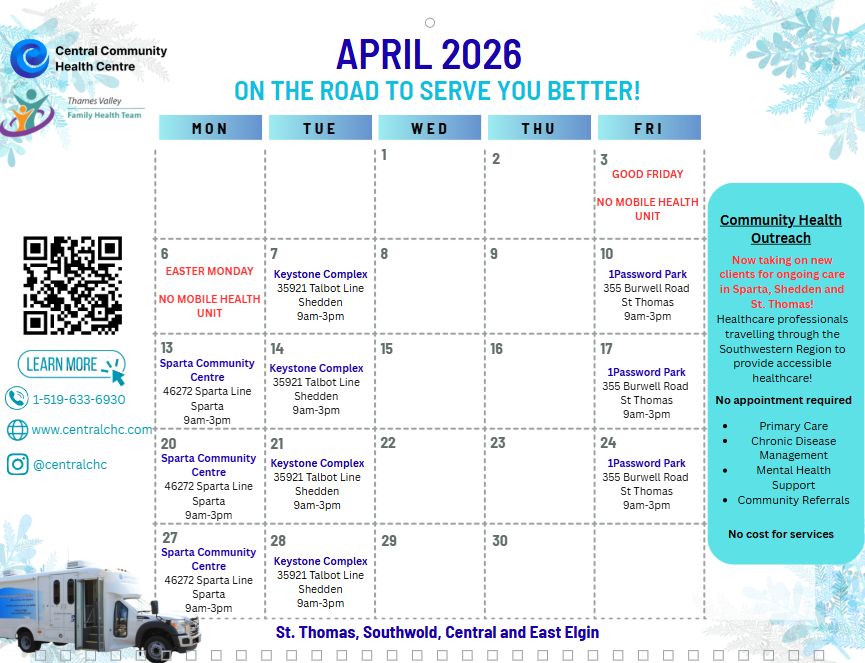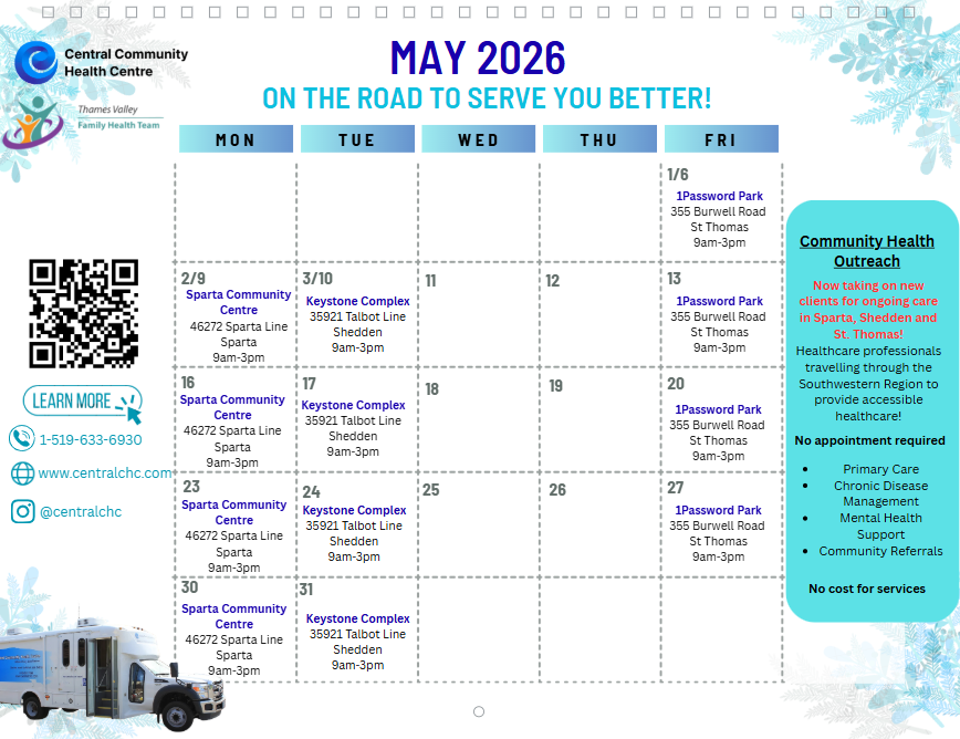 We offer access to a nurse practitioner, nurses, and community paramedics to ensure client’s have a wide range of access to healthcare support services. We offer primary care, chronic disease management, mental health support, and help navigating community support services. All appointments are walk-in, no appointments, no referrals needed, and no cost for service. We look forward to meeting you!